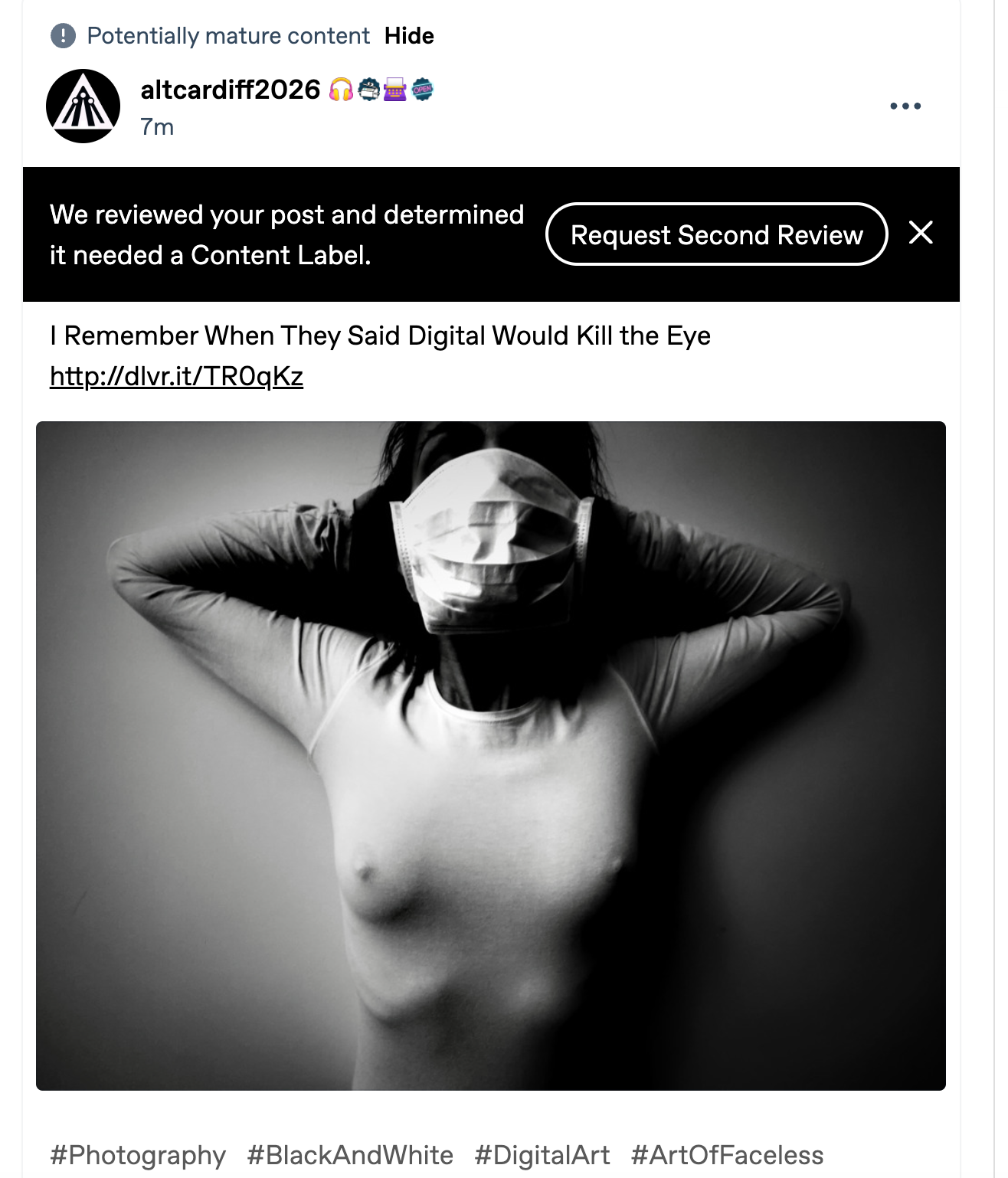 Today, Bluesky labelled it "mature content." X throttled it into invisibility. Tumblr added a content warning. The platforms have decided, apparently, that your eyes need protecting from it.